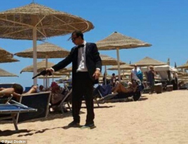 فاجأ رجل بأحد منتجعات شرم الشيخ، السائحين البريطانيين، الذين يتمتعون بأشعة الشمس على الشاطئ، بإشهار سلاح ناري في وجوههم مثيرًا الذعر بينهم، بعد أن ظنوا أنهم أمام هجوم إرهابي، كالذي وقع في تونس قبل ساعات، وذلك بعد يوم من الهجوم الذي تعرض له شاطئ أحد فنادق المدينة التونسية “سوسة”، وراح ضحيته 38 شخصًا، أغلبهم من البريطانيين.