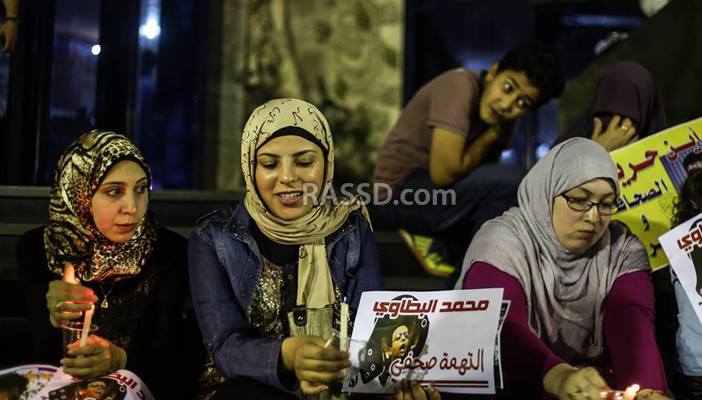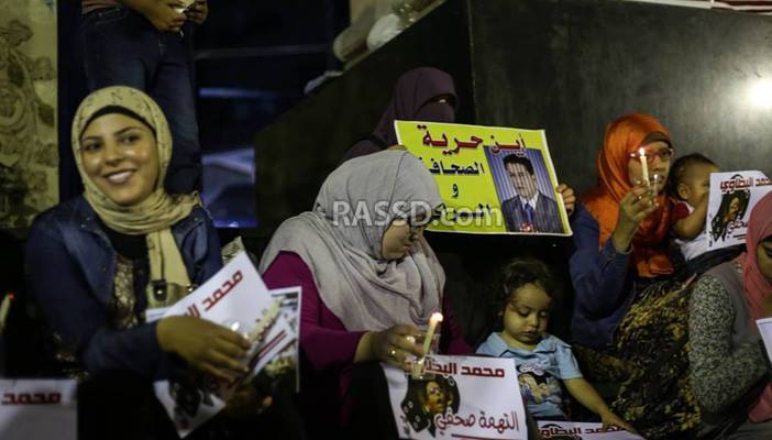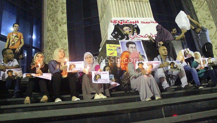 نظمت أسرة الزميلين محمد البطاوي الصحفي بمؤسسة أخبار اليوم، و عمر عبد المقصود وقفة بالشموع علي سلالم نقابة الصحفيين مساء أمس، للمطالبة بالإفراج عنهما .