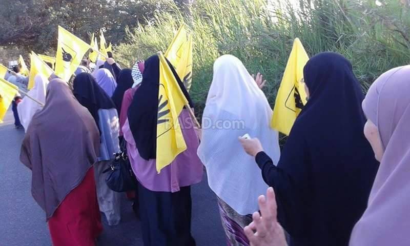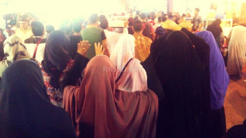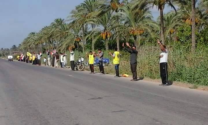 نظم تحالف دعم الشرعية و “نساء ضد الانقلاب” و “شباب ضد الانقلاب” سلسلة بشرية بطريق مشتول السوق منيا رفعوا خلالها شارات رابعة وصور الرئيس مرسي .