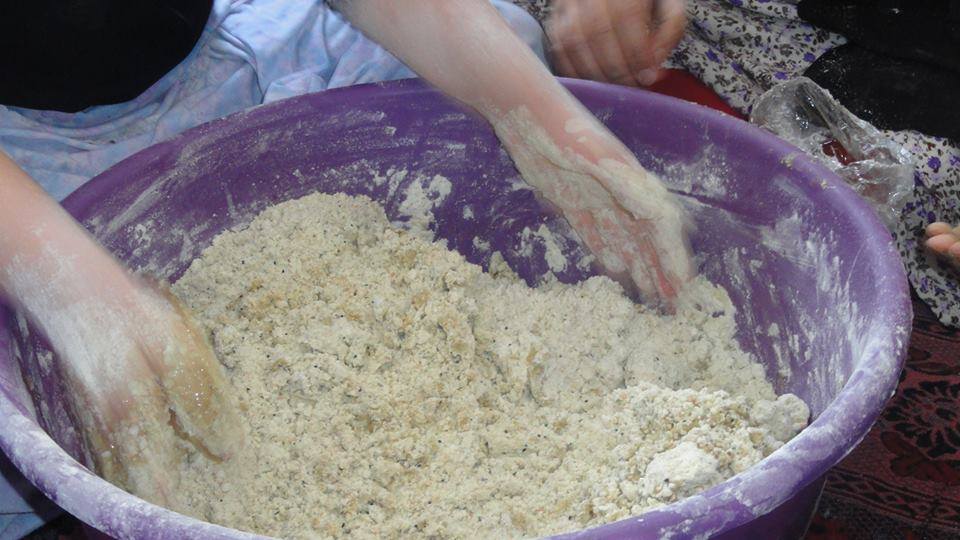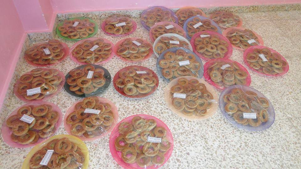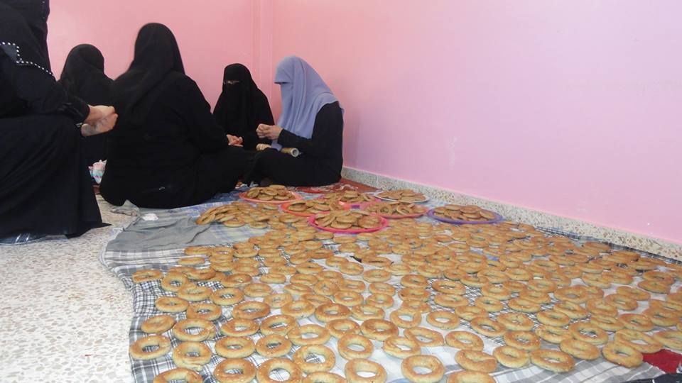 ويعمل الجميع، سيدات وفتيات، لإتقان الكعك الذي سيعطينه للأسر الفقيرة في عيد الفطر المبارك.