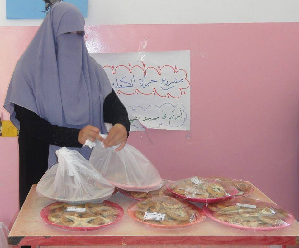 نفذت أسرة مسجد الشهيد حسن البنا، في مخيم النصيرات وسط قطاع غزة، مشروع “حملة كعك العيد للمحتاجين”، بمشاركة خمسين امرأة من نساء المسجد اللواتي تطوّعن في إعداد الكعك وتجهيزه.