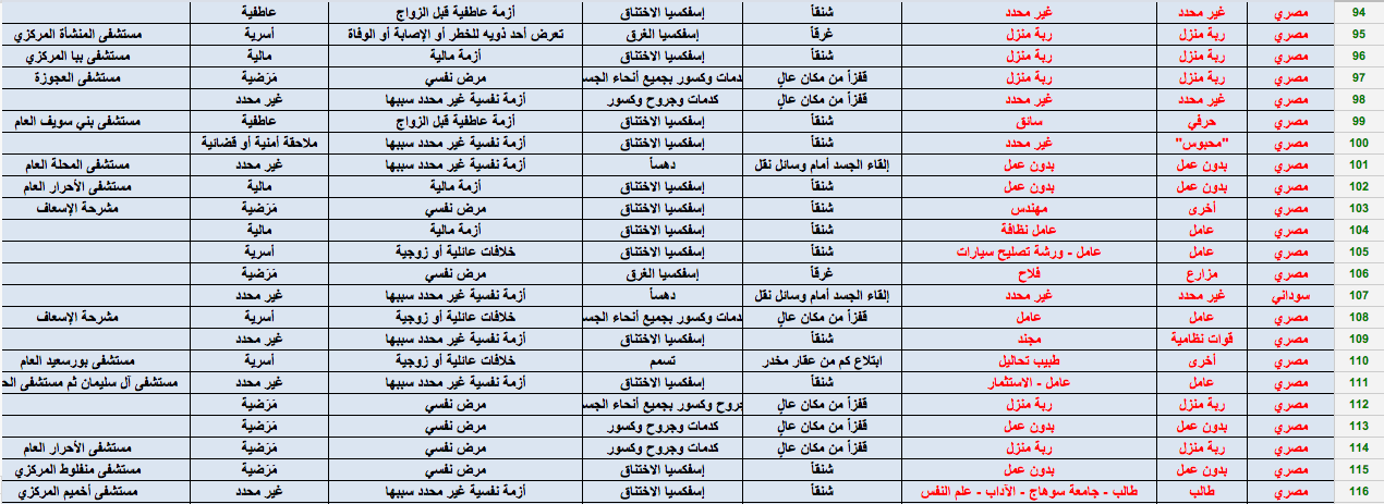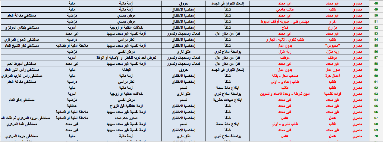 بالإنفوجرافيك والأسماء.. 165 حالة انتحار خلال النصف الأول من 2015
