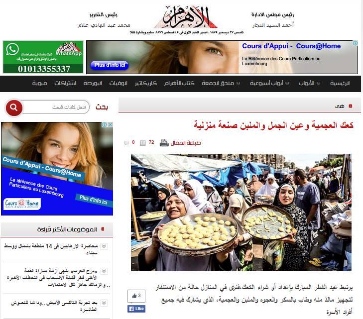 تداول نشطاء على مواقع التواصل الاجتماعي، صورًا من تقرير لجريدة الأهرام الرسمية، القريبة من النظام الحاكم، حول كعك العيد، استعانت خلاله بصورة سابقة لسيدات خلال اعتصام رابعة العدوية، يحملن “صواني” الكعك وعليها شعار “ارحل يا .”CC