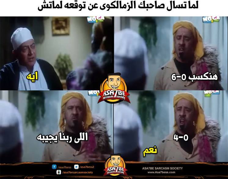 واستعانت صفحات “أساحبي” و”ميدياوي” و”فاصل مش إعلامي”، بمشاهد من أفلام ومسلسلات مشهورة للسخرية من نتيجة المباراة، نرصد لكم أبرزها.