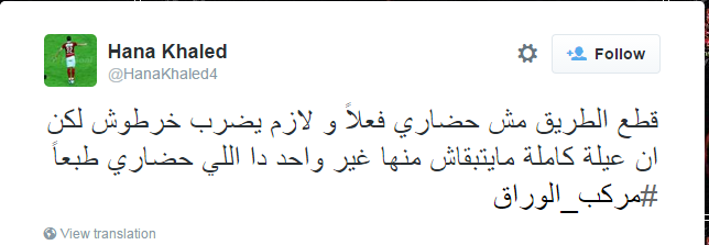 وسخرت Hana Khaled من اعتداء قوات الأمن على أهالي الضحايا لقطعهم الطريق، قائلة: “قطع الطريق مش حضاري فعلًا، ولازم يضرب خرطوش، لكن إن عيلة كاملة مايتبقاش منها غير واحد، دا اللي حضاري طبعًا”.