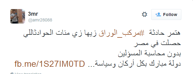 ورأى ‏amr28088 أن حادث الوراق، سيمر كمئات الحوادث التي مرت قبله في مصر دون محاسبة المسؤولين.