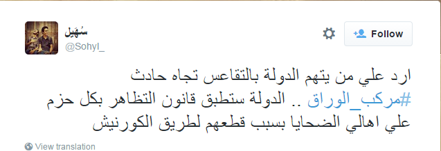 وعلق سهيل، ساخرًا: “أرد على من يتهم الدولة بالتقاعس تجاه حادث مركب الوراق، الدولة ستطبق قانون التظاهر بكل حزم على أهالي الضحايا بسبب قطعهم طريق الكورنيش”.