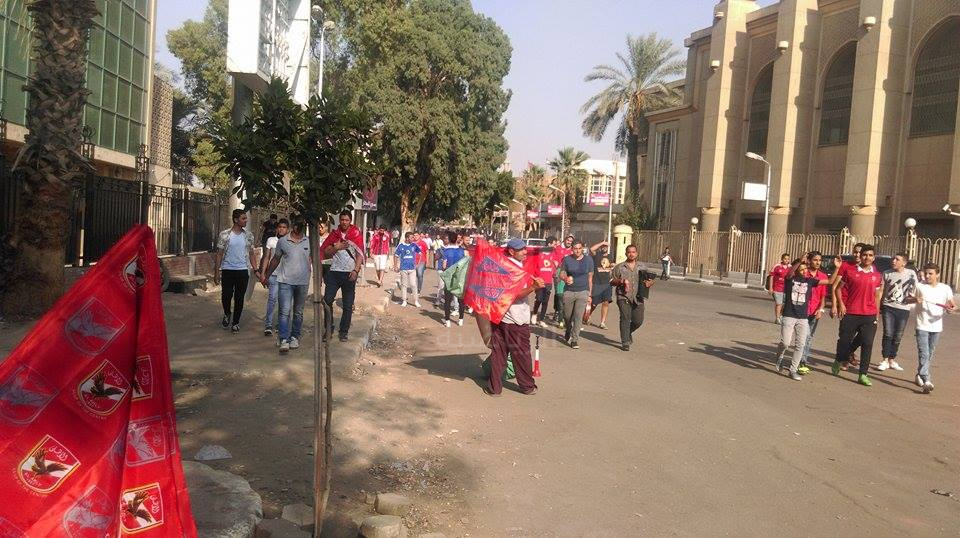 توافد عدد من جماهير النادي الأهلي لدعم الفريق الأحمر قبل مواجهة فريق النجم الساحلي ببطولة الكونفدرالية الأفريقية .