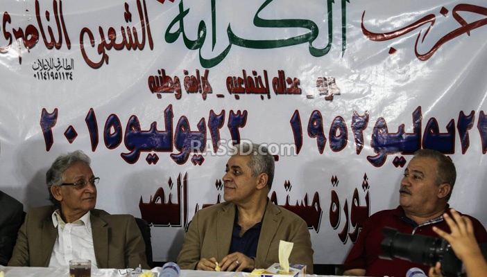نظم حزب الكرامة بمقره بالدقي إحتفالية بالذكرى الثالثة والستين لثورة 23 يوليو، بحضور حمدين صباحي مؤسس حزب التيار الشعبي تحت التأسيس، والمرشح الرئاسي السابق.