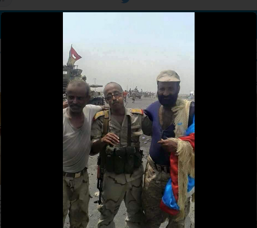 وأضاف الناشط اليمني محمد الضبياني أنه “بتطهير قاعدة العند يبدأ انحسار المتمردين، ليتحقق نصر الله على البغاة الطائفيين المجرمين “الحوثي””.