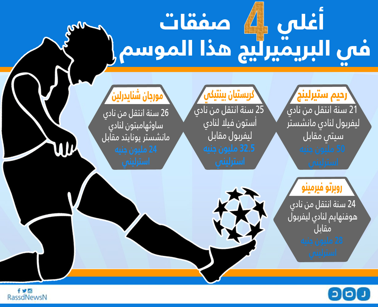 مع اقتراب بطولة الدوري الإنجليزي “البريميرليج”من الانطلاق، إذ تتبقى لها 3 أيام، تقدم “رصد” لكم أهم المعلومات عن أغلى 4 صفقات تمت قبل بداية هذا الموسم.