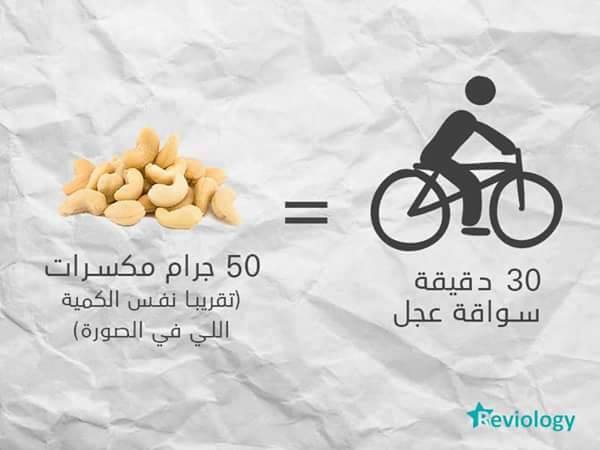 فمقدار 50 جرامًا من المكسرات يمكنك التخلص منها بقيادة الدراجة نحو 30 دقيقة.