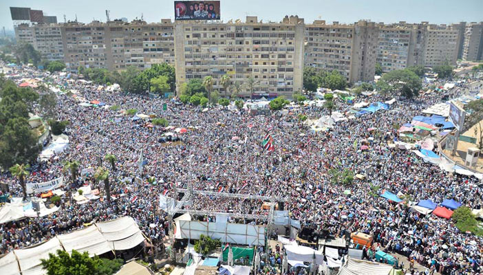 وبدأ الاعتصامان في 28 يونيو، قبيل مظاهرات معارضة لـ مرسي في الـ30 من الشهر نفسه قادت إلى قيام الجيش بانقلاب عسكري عزل فيه الرئيس مرسي في 3 يوليو 2013.
