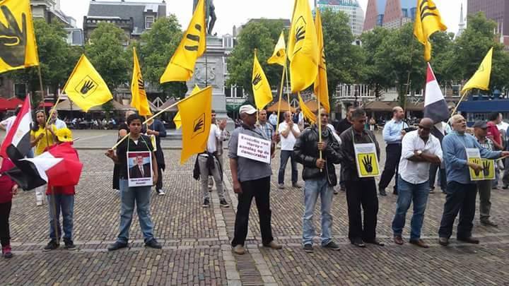 وانطلقت تظاهرات في لاهاي بهولندا، رفع المشاركون خلالها صور شهداء مذبحة رابعة، وشارات رابعة.