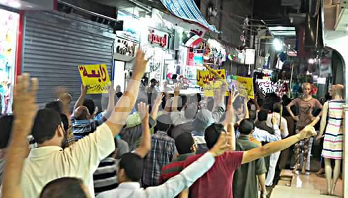 فضلا ًعن تنظيم وقفة ليلية بقرية اجا، ورفع المشاركون فيها شارات رابعة ورددوا هتافات مناهضة للانقلاب ومطالبة بالقصاص للشهداء.