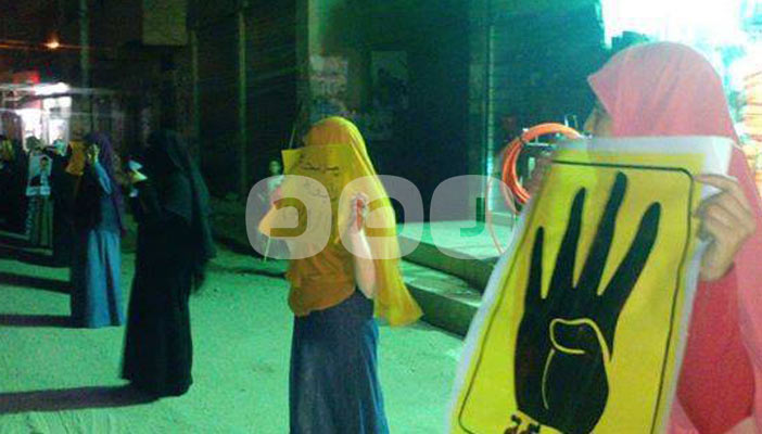 نظم التحالف الوطني لدعم الشرعية بدمياط، سلسلة بشرية مساء اليوم الثلاثاء، بمدينة كفر البطيخ امام مسجد الباروجى، ندد المشاركون فيها باستمرار اعتقال فتيات دمياط، وبذكرى مذبحة سيارة الترحيلات، مرددين العديد من الهتافات منها “يسقط حكم العسكر” و “في الجنة يا مغلاوي” و”مش هنسيب حقك يا شهيد” وسط تفاعل من المارة برفعهم اشارات رابعة العدوية..jpg)