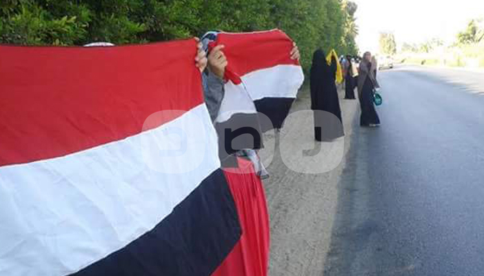 وجاءت السلسلة على طريق ” النوبارية أبو المطامير”، ورفع خلالها المشاركون أعلام مصر ورايات رابعة وصور الرئيس مرسي، ولافتات منددة بقوانين الإرهاب وزيادة معاشات العسكريين والخدمة المدنية الذي ينتقم من موظفي الدولة.