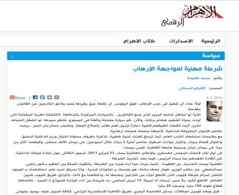 وخلال مقالته التي نشرتها تحت عنوان “شرطة مهنية لمواجهة الإرهاب” يحذر الكاتب محمد طعيمة من تكرار الهجمات والتفجيرات على المقرات الأمنية بعد واقعة مقتل النائب العام هشام بركات.