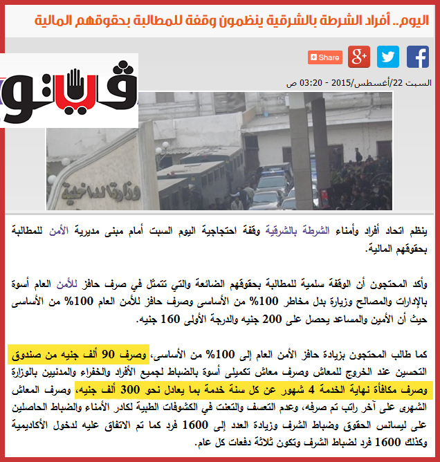 سخر مستخدمو مواقع التواصل الاجتماعي من الاعتصام الذي أقامه أمناء وأفراد شرطة أمام مديرية أمن الشرقية.