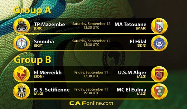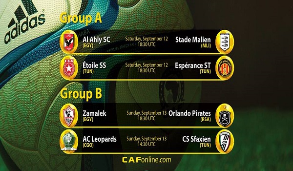 ففي الكونفيدرالية، سيلاقي الأهلي نظيره الملعب المالي في القاهرة يوم السبت 12 سبتمبر الساعة الثامنة والنصف مساء، بينما يلتقي الزمالك مع فريق أورلاندو يوم الأحد 13 سبتمبر في تمام الثامنة والنصف مساء.