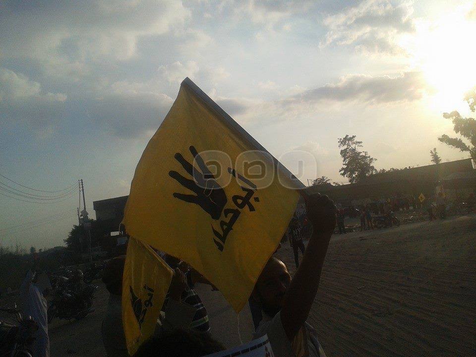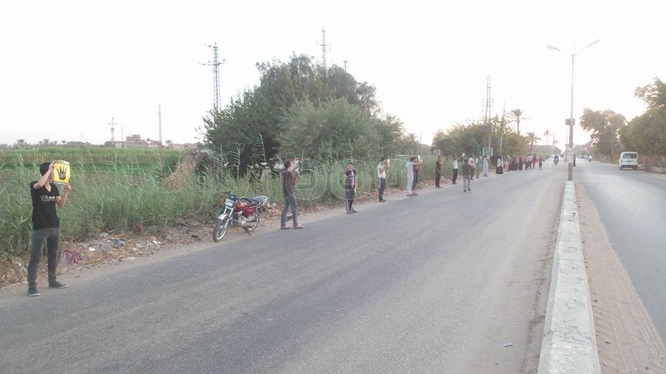 نظم المناهضين لحكم العسكر، سلسلة بشرية على الطريق السياحي بالمحافظة، ردد خلالها المتظاهرون عبارات مطالبة بالإفراج عن جميع المعتقلين وعودة الشرعية الدستورية، مؤكدين على استمرار تظاهراتهم حتى تحقيق مطالبهم.