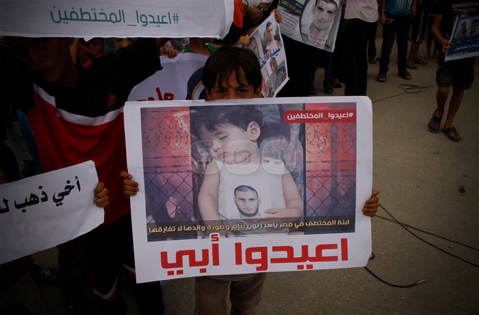 نظمت عوائل 4 فلسطينيين مُختطفين في الأراضي المصرية، اليوم الأربعاء، وقفة احتجاجية داخل معبر رفح؛ للمطالبة بالإفراج عن أبنائهم، وكشف مصيرهم.