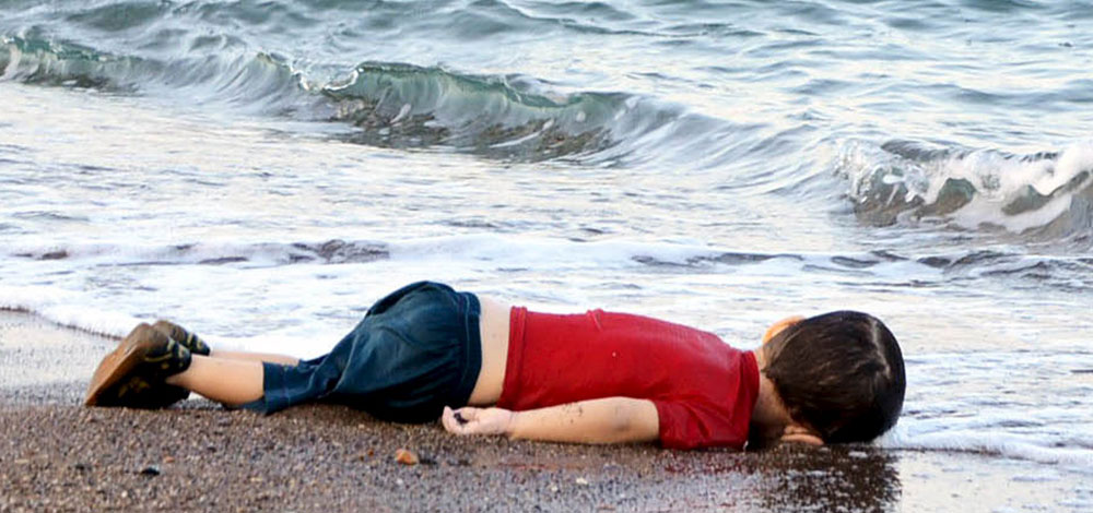 يذكر أن صورة جثة الطفل عيلان كردي، الذي يرتدي قميصًا أحمر وسروالًا قصيرًا أزرق، وهو ملقى على وجهه وسط رغوة الأمواج المتكسرة على شاطئ يقع قرب بدروم، أحد المنتجعات التركية الشهيرة، أثارت اهتمام الرأي العالمي، ووجدت تعاطفًا غير مسبوق، مع قضية اللاجئين الذين يحاولون عبور البحر من شواطئ تركيا إلى الجزر اليونانية.