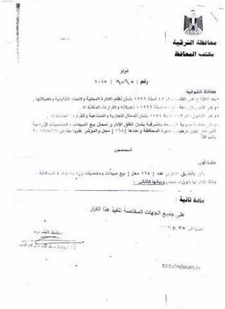 اصدر الدكتور رضا عبدالسلام محافظة الشرقية قرار رقم 9595لسنة 2015 بالغلق الإدارى لعدد 164 محل مخصبات وأسمدة زراعية مخالفة للمواصفات وبدون تراخيص