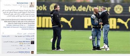 وكتب أدمن الصفحة: “زيدان يصل لمدينة دورتموند، للمشاركة اليوم السبت، في مباراة اعتزال أسطورة الفريق وزميله السابق في فريق بروسيا دورتموند اللاعب ديدي على ملعب السيجنال آيدونا بارك، بعد تلبية دعوة اللاعب وإدارة النادي”.