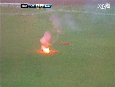 أنهى الحكم مباراة منتخب السعودية مع مضيفه منتخب ماليزيا قبل نهاية الوقت الأصلي، في المباراة التي لعبت ضمن التصفيات المؤهلة لكأس العالم 2018 وأمم آسيا 2019، عقب إلقاء الجماهير الشماريخ والألعاب النارية على أرضية الملعب لغضبهم من نتيجة اللقاء.