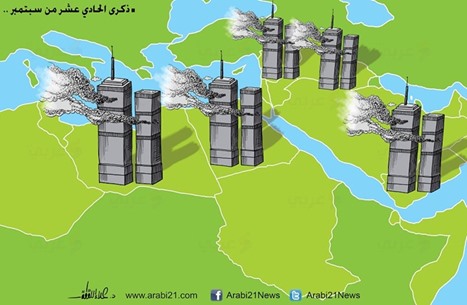 وعربيا نشر موقع عربي 21 كاريكاتير تحت عنوان “ذكرى الحادي عشر من سبتمبر” يوضح من خلاله ما قامت به الولايات المتحدة في الشرق الأوسط بعد هجمات سبتمبر