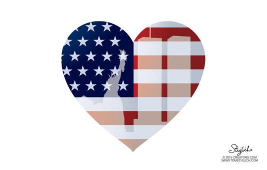 كما نشرت صحيفة يو إس نيوز صورة لعلم الولايات المتحدة على شكل قلب وبداخله برجي التجارة وتمثال الحرية
