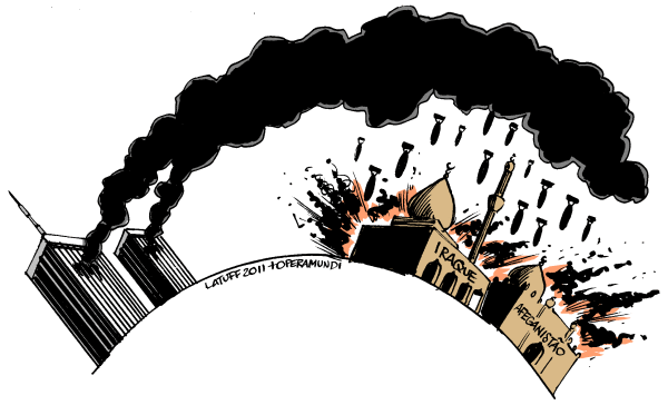 وأعادت الكثير من الصحف عددا من كاريكاتيرات الرسام البرازيلي “كارلوس لاتوف” الخاصة بأحداث سبتمبر 2011 ومنها: