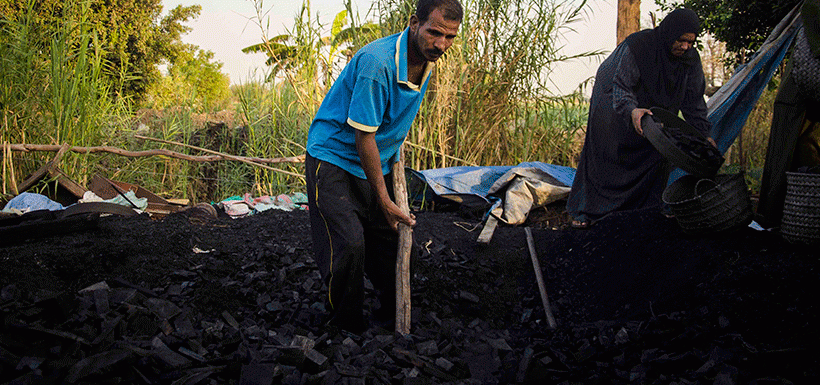يعد إنتاج الفحم بمحافظة دمياط مهنة ذات أهمية كبيرة لأبناء المحافظة، وخاصة في القرى، ولكن مشكلة تلك المهنة هو ما ينجم عنها من أدخنة ضارة للغاية تصيب العاملين بها والأهالي الذين يسكنون بجوار “مكامير الفحم”، بأمراض الصدر والرئة؛ دون تدخل من الحكومة التي يقتصر دورها على تحصيل الغرامات المادية فقط.