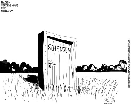 وفي نفس السياق، نشرت صحيفة “تليجراف” البريطانية رسما يصور دول “شينجن” الأوروبية كبوابة النجاة.