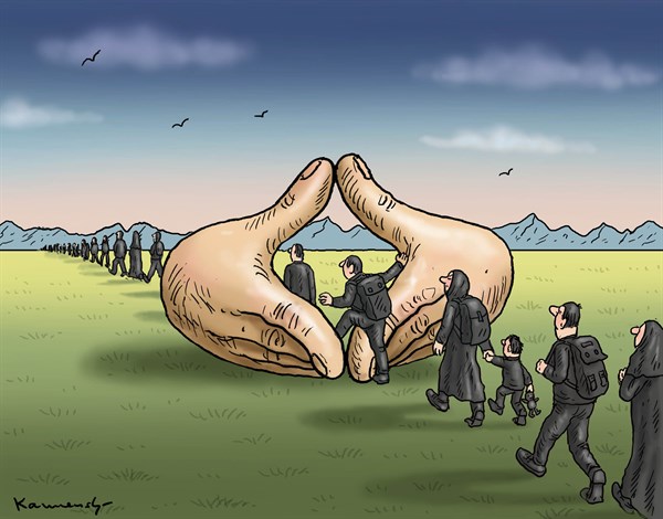 وعبرت الرسامة السلوفاكية ماريان كيمنسكي، عن رأيها في قضية اللاجئين السوريين بهذا الرسم: