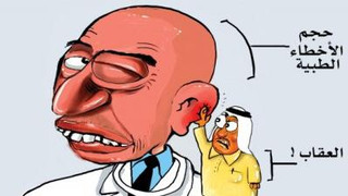 وعن حجم الأخطاء الطبية في المملكة العربية السعودية والعقوبات الصادرة للرد على هذه العقوبات نشرت صحيفة المدينة السعودية هذا الكاريكاتير.