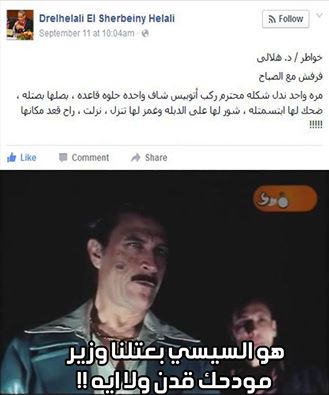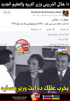 فور إعلان تعيين الدكتور هلالي الشربيني هلالي، وزيرًا للتعليم، انفجرت مواقع التواصل الاجتماعي سخرية من الوزير الجديد؛ بسبب حسابه على موقع الـ”فيس بوك”، والذي احتوى على الكثير من الأخطاء الإملائية والتعليقات الساخرة، كما انتشرت الكثير من “الكوميكسات” سخرية من الوزير.