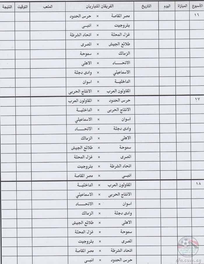 بالتفصيل.. ننشر جدول مباريات الدوري المصري الجديد 2016