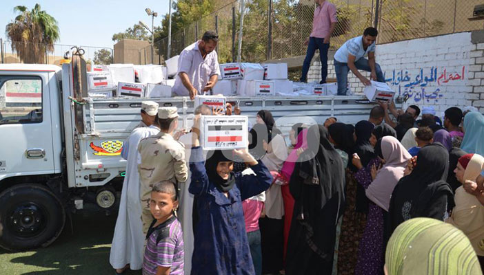 وتم أمس توزيع 400 كرتونة من القوات المسلحة على الأسر الفقيرة بقرية دنديل بمركز ناصر.