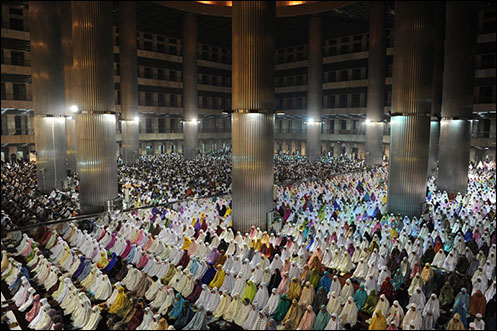 أدى نحو 300 ألف مسلم، صلاة عيد الأضحى المبارك، في جامع الاستقلال بالعاصمة جاكرتا، والذي يتسع لـ250 ألف مصلٍ فقط. ونظرًا لعدم استيعاب المسجد لهم، أدى قسم من الإندونيسيين صلاتهم في الطرقات المحيطة بحرم الجامع الذي يتألف من أربعة طوابق، ويعد رابع أكبر مسجد في العالم.