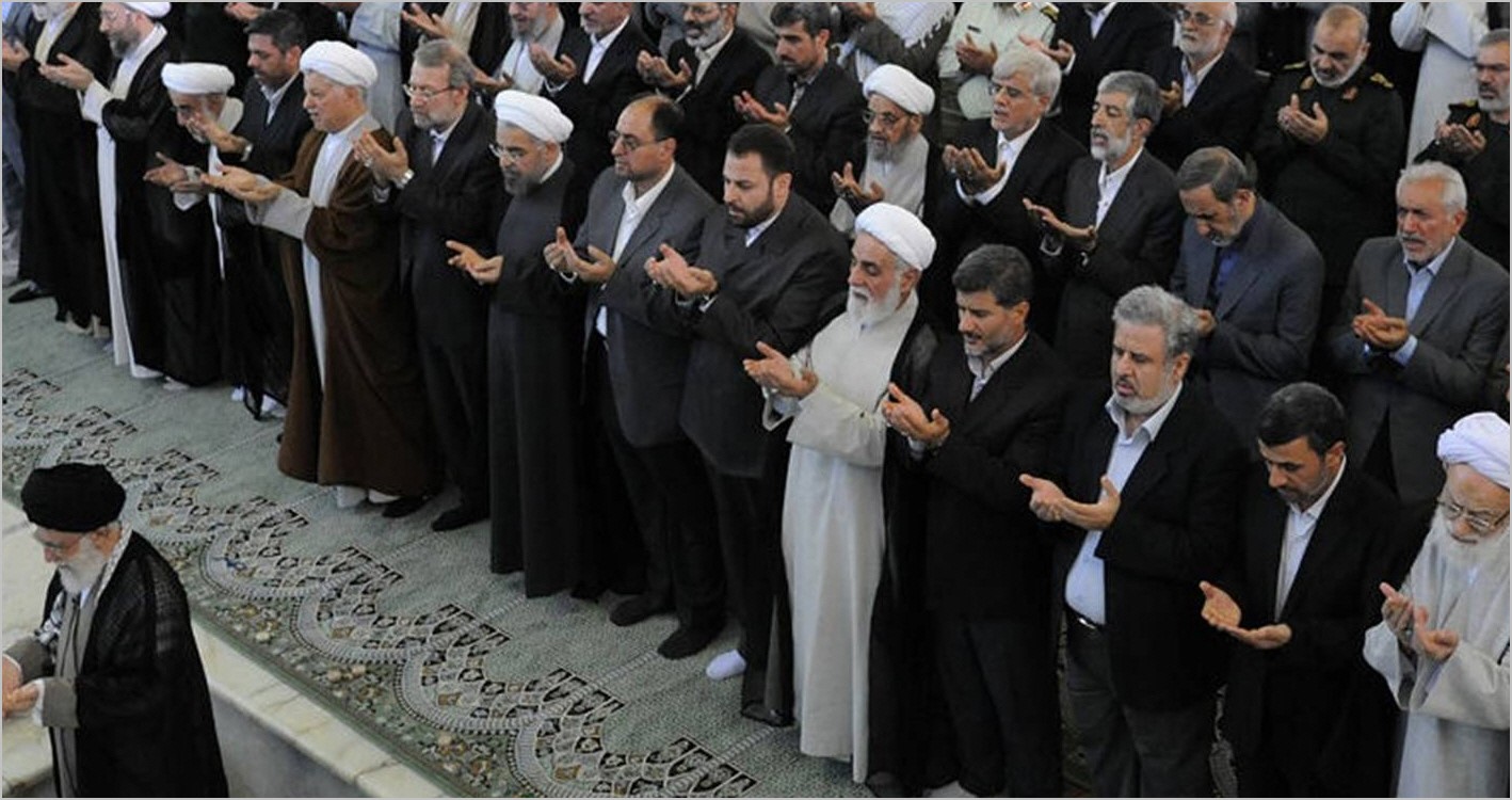 أمَّ عضو هيئة الرئاسة في مجلس خبراء القيادة، آية الله سيد أحمد خاتميى، المصلين لأداء صلاة العيد في حرم جامعة طهران، بمشاركة بعض السياسيين والقادة العسكريين الكبار.