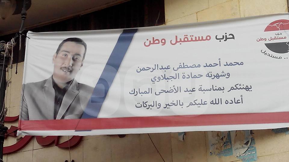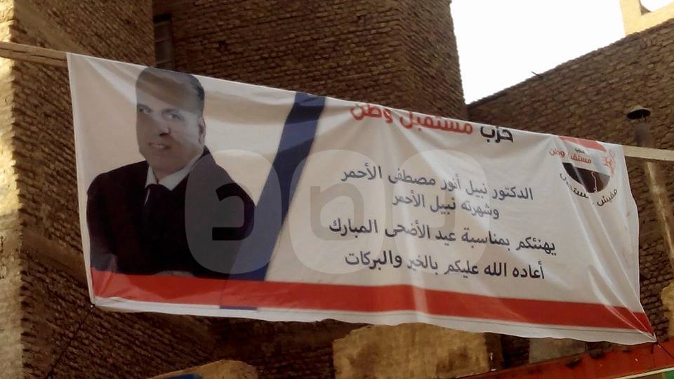 ولجأ البعض الآخر إلى تعليق اللافتات على أبواب ساحات صلاة عيد الأضحى بالمحافظة، بينما تصدر أعضاء الحزب الوطني المنحل المشهد السياسي والانتخابي في المحافظة.