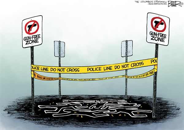 وبعدما أرجعت السلطات السبب وراء العملية إلى مرض نفسي يعاني منه القاتل، نشرت صحيفة واشنطن بوست كارتونًا سخرت خلاله من تعدد حوادث القتل في أميركا من خلال رسم منطقة حرة لاستخدام الأسلحة.