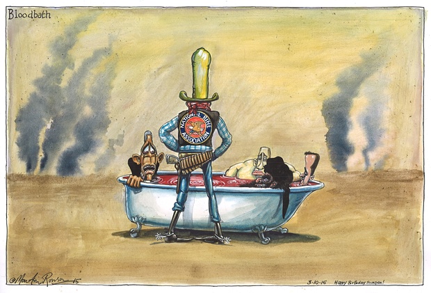 كاريكاتير.. المرض النفسي يستمر في تحريك عمليات القتل بأميركا