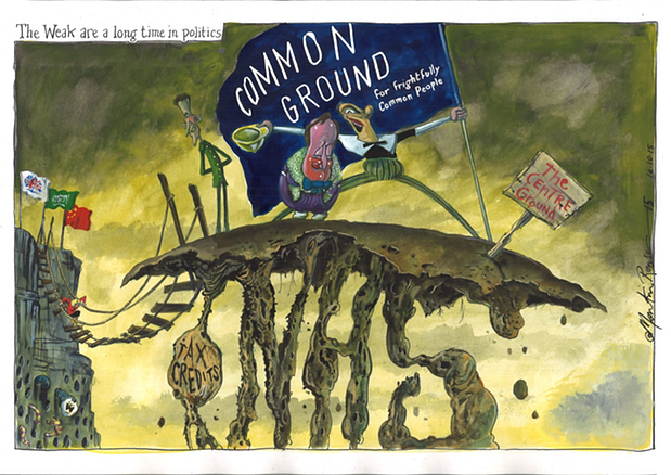 ندد جيريمي كوربين، زعيم حزب العمال بمؤتمر حزب المحافظين، واصفًا إياه بأنه وليمة من الغش والتلفيق والخداع المليء بالادعاءات الوهمية، فكان للجارديان هذا الرسم: