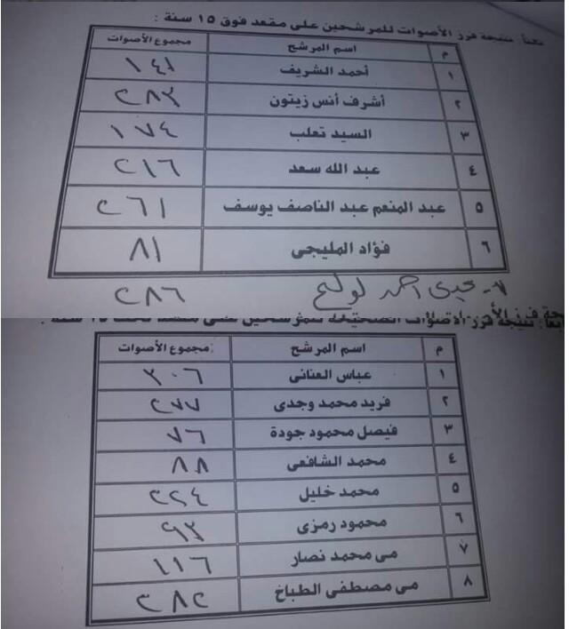 كما فاز بالمقاعد الأخرى تحت السن، كل من مجدي لولح، وعبدالمنعم ناصر، وعباس العناني، ومي الطباخ.