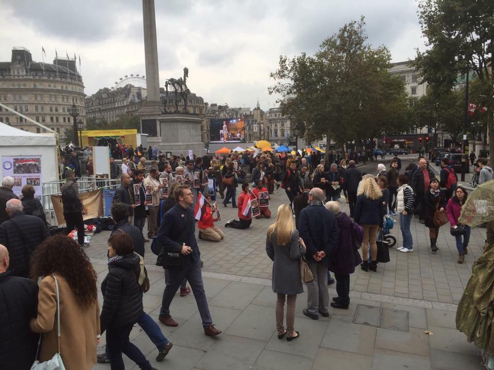 استجابة لدعوات حملة "إعدام وطن" نظم عشرات النشطاء السياسيين وقفة احتجاجية بميدان ترافلجار بالعاصمة البريطانية لندن مساء اليوم، للتنديد بأحكام الإعدام السياسية التي تصدر بحق معارضي الحكم العسكري في مصر