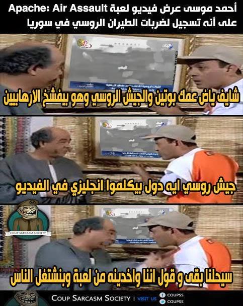 موجة من التعليقات الساخرة و”الكوميكسات”؛ من إذاعة الإعلامي أحمد موسى مقطع فيديو من لعبة قديمة على أنه تسجيل من سوريا للطيران الروسي وهو يضرب “داعش”.