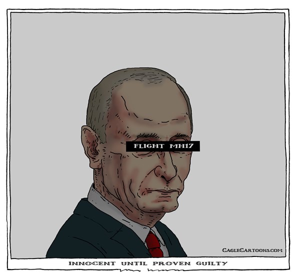 وصور الموقع، في كاريكاتير آخر، الرئيس الروسي، فلاديمير بوتين كمجرم بسبب تدخله بسوريا وتزويده الرئيس السوري، بشار الأسد، بالأسلحة في مواجهة المعارضة المسلحة ضده.